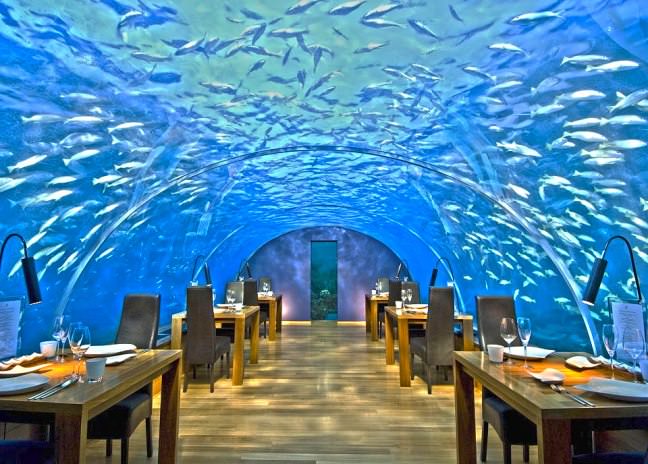 If you were looking for one solid reason why to travel to Maldives, then your search comes to an end with Ithaa -The Underwater Restaurant. Ithaa is the real pride of Maldives and is a restaurant which has been built under the sea. Thus, as you sink into your platter and into your scrumptious cuisines, you can find fishes and other sea creatures encircling you at the top, right & left outside the ring of the glasshouse.